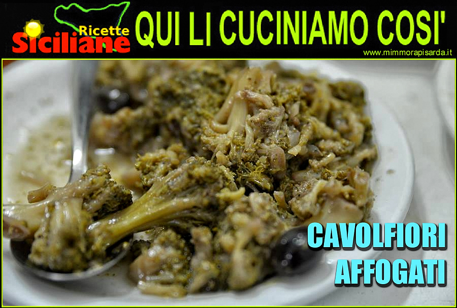 Il cavolfiore affogato e’ una ricetta tipica catanese, affogato perchè costretto nel tegame fra i suoi ingredienti e pressato fino a soffocare. La ricetta prevede una cottura lenta nel vino rosso con cipolla, acciughe, olive nere e formaggio primosale.