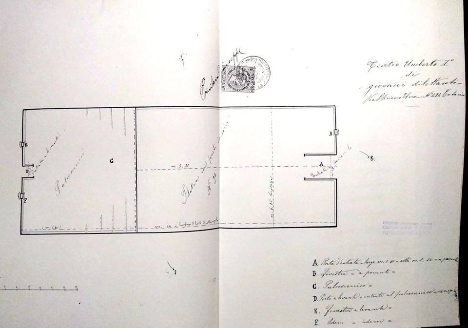 In questa strada nel 1888 il signor D'Urso Domenico aprì un teatrino di "giovani dilettanti" denominato UMBERTO PRIMO, il teatrino poi nel 1889 venne trasferito in Via Stesicorea- Etnea n. 484 dal nuovo proprietario che si chiamava Francesco Caracciolo. Nei commenti pubblico la pianta del teatrino. (testi e foto di Turi Giordano)